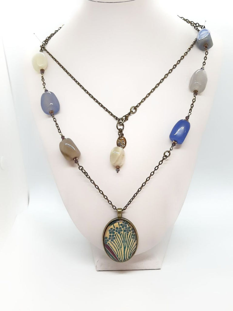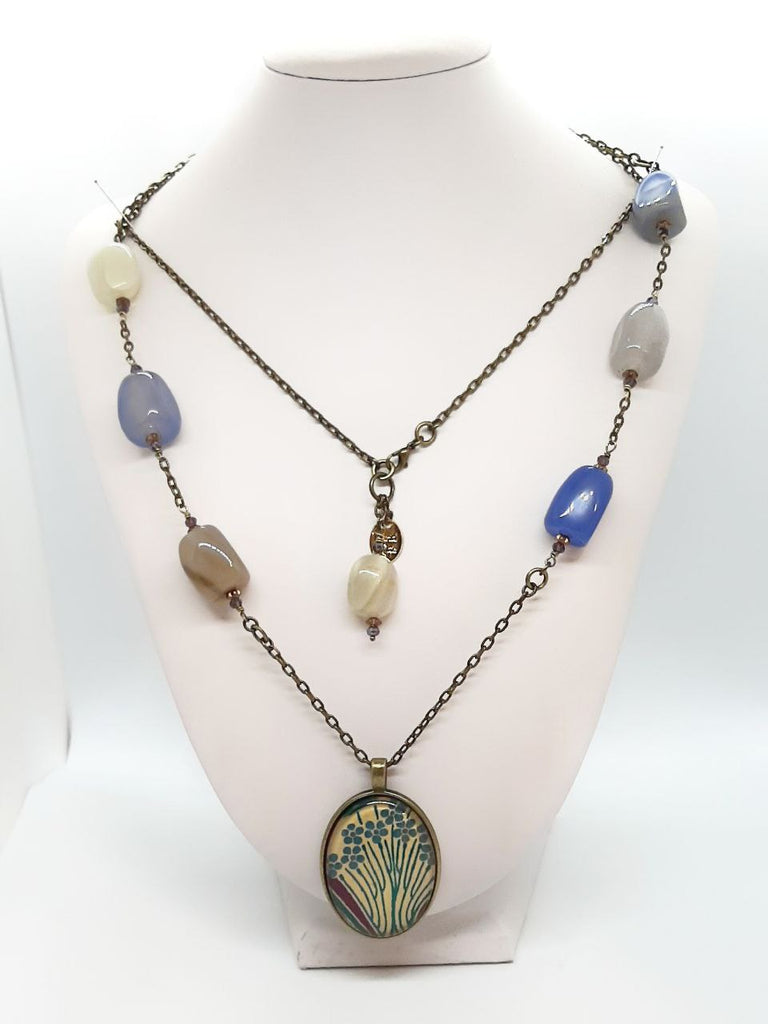 Le collane dello Scrigno di Ravecca hanno un design originale che associa l'eleganza classica della forma al colore delle pietre semi-preziose e alla fantasia dei medaglioni che le caratterizzano.