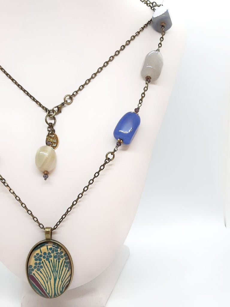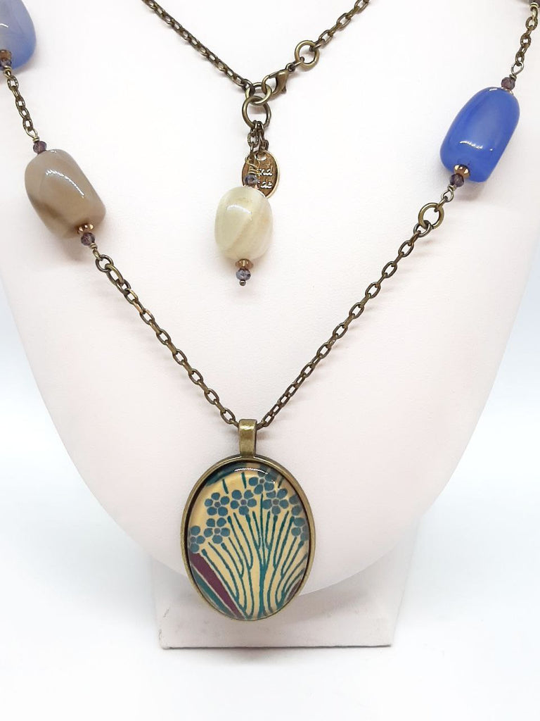 E' personalizzato perchè hai scelto il colore e la pietra adatti a te. Sono un pezzo unico realizzato a mano, in quanto le pietre sono sempre leggermente diverse per colore e misura e il medaglione può presentare leggere variazioni rispetto al tessuto originale Liberty rappresentato.